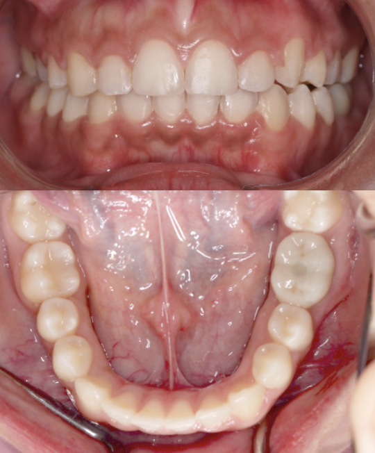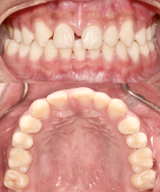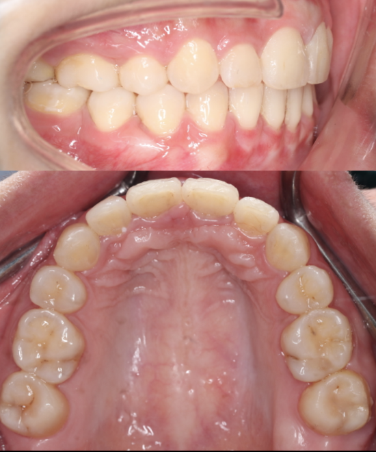 This case presented with severe dental crowding and compromised arch space. Orthodontic treatment was performed to align the dentition and close molar spaces, followed by implant placement on the left side to restore the missing tooth and achieve optimal occlusion, function, and arch harmony. Treatment completed by the Moral Dental Team.
