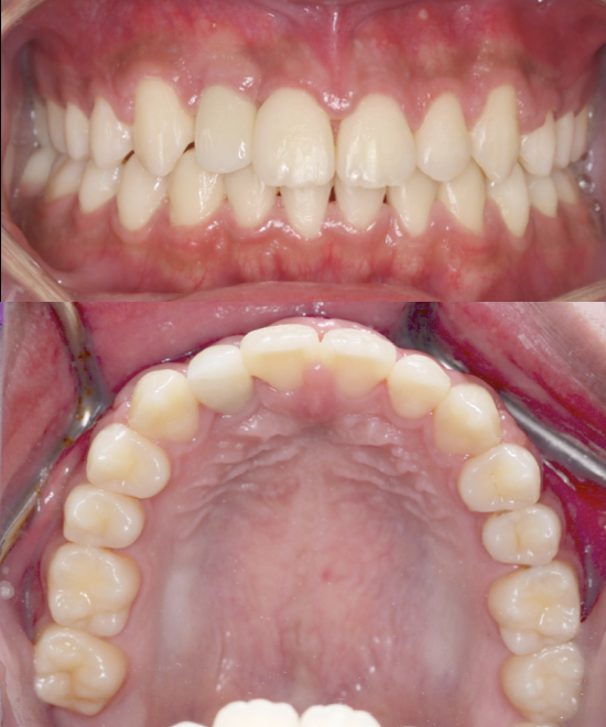 The patient presented with severe upper anterior crowding, rotated teeth, and a constricted arch affecting bite balance and smile aesthetics. The Moral Dental Clinic orthodontic team provided comprehensive BRACES treatment to align the teeth, correct rotations, and expand the arch for proper occlusion. As a result, the patient achieved a well-aligned upper arch, improved bite, and a cleaner, more harmonious smile.