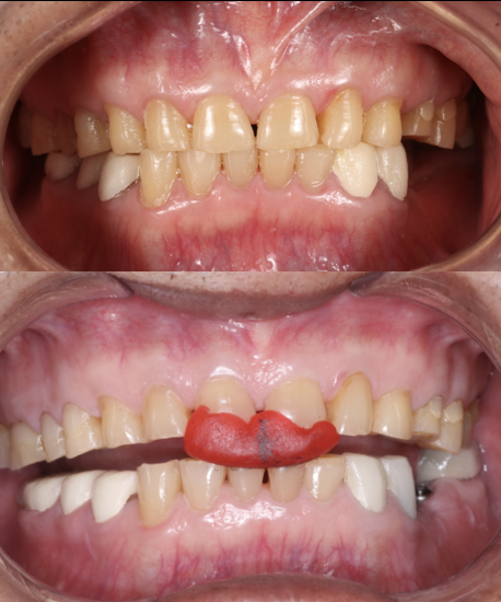 A severe bruxism case restored with a combination of two strategically placed dental implants and full monolithic zirconia crowns to rebuild strength, function, and aesthetics. This comprehensive rehabilitation was successfully completed at Moral Dental Clinic, delivering a stable bite, improved smile harmony, and long-term durability.