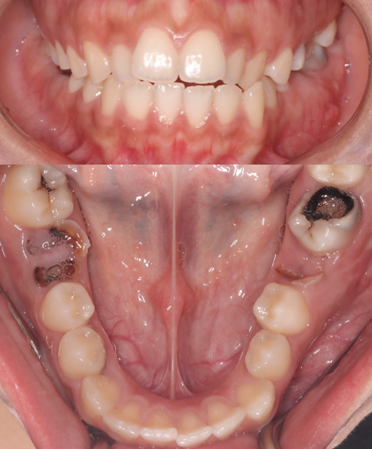 Orthodontic treatment was performed to align crowded teeth and close lower molar spaces bilaterally. On the left side, space was closed by mesializing the wisdom tooth and distalizing the second molar. On the right side, protraction of the second and third molars was done to close the edentulous space. Treatment completed by the orthodontic team at Moral Dental Clinic.